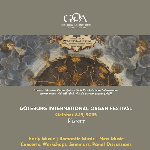 The Göteborg International Organ Academy spotlights the remarkable organ landscape of the city of Göteborg with concerts and lectures by leading organists from around the world. The Göteborg International Organ Festival and The Göteborg Youth Organ Festival are cross-cultural platforms for early and new music, with the goal of being a sought after entrance to a world of tactile passion and new sounds - for all!